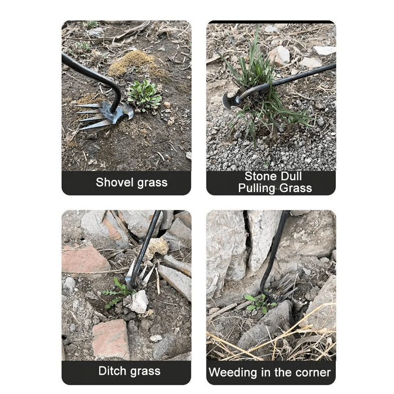 is very simple to use. When weeding. insert the soil four times. The grass roots should be as close to the bottom of the ditch as possible to facilitate removal of weeds in corners and narrow spaces. At the same time. the quadruple weeder also loosens the soil surface.
