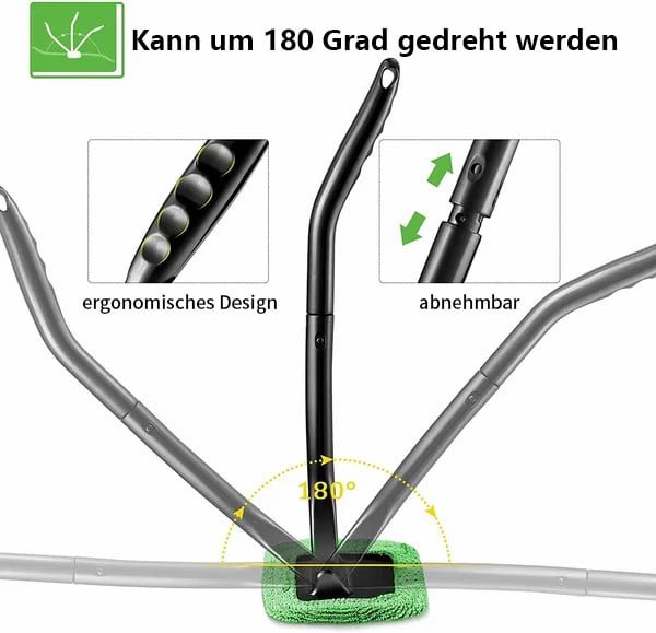 The car window cleaner is equipped with a 180 degree rotating head of the car cleaning wand. which adapts very well to the curved glass surface. removing dirt and dust from the windshields or glass of the car. saving you more effort